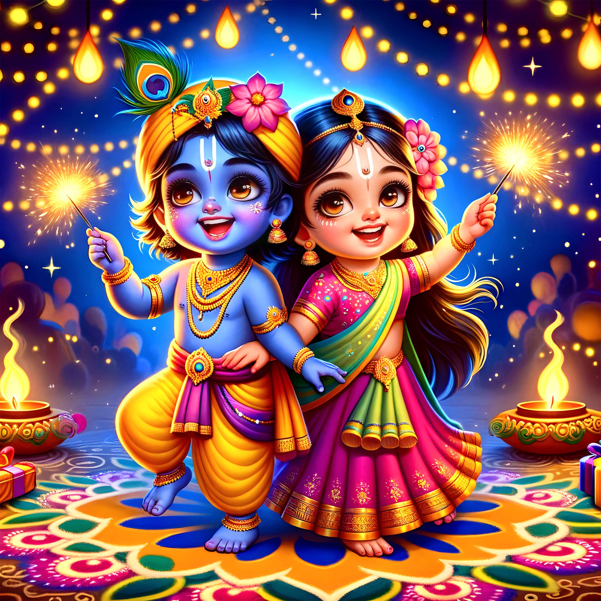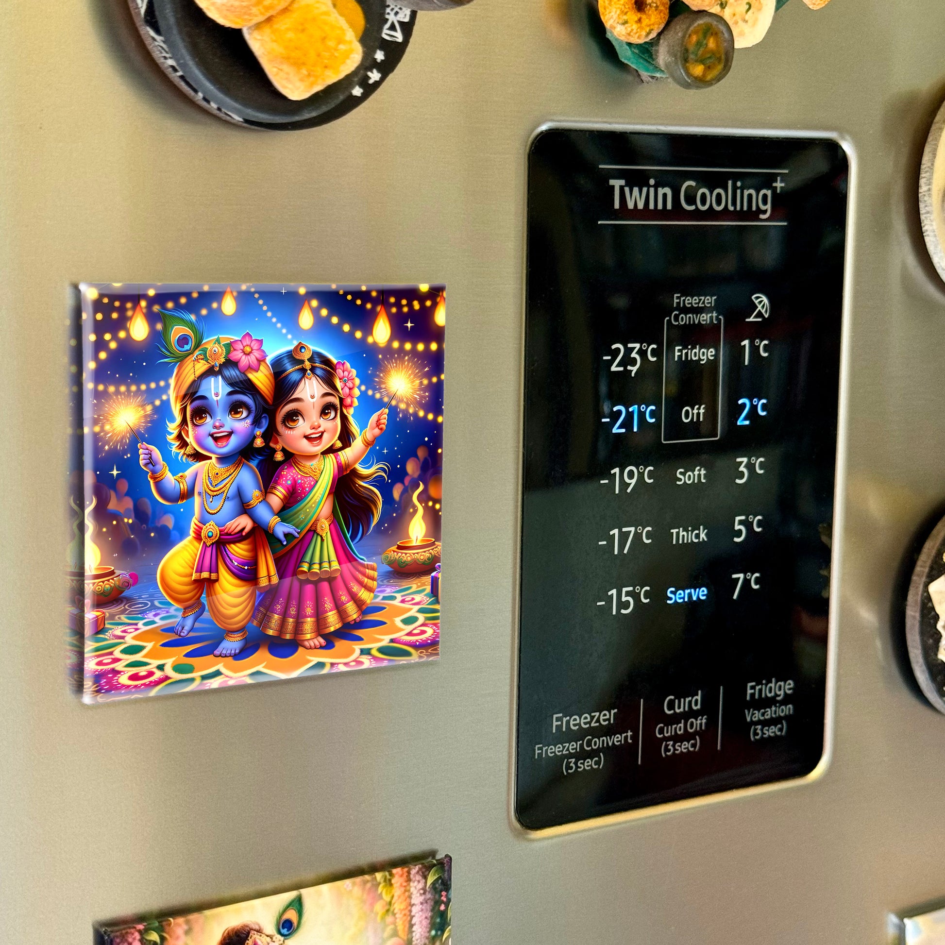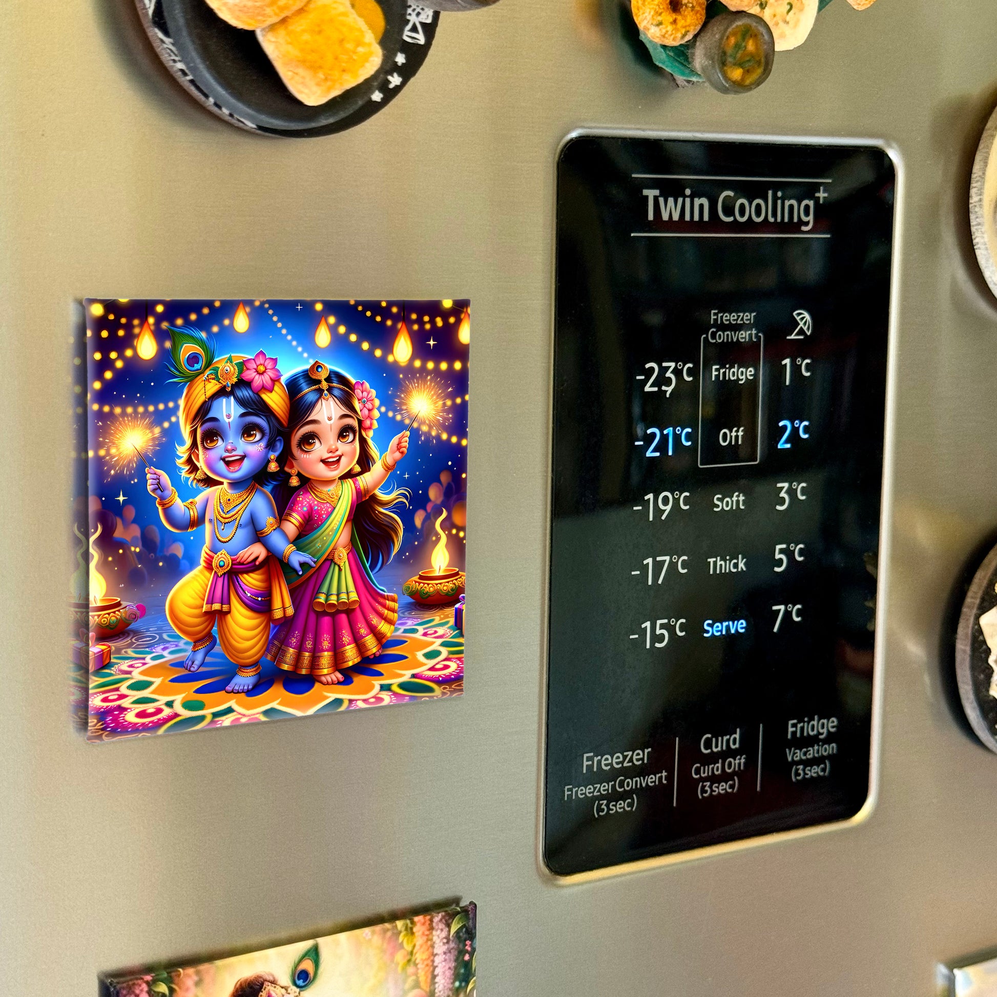 63mm Square Fridge Magnet of Lord Radha Krishna 110046